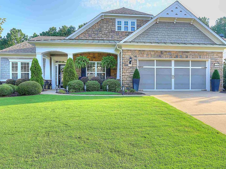 2,877 sq.ft Del Webb Morningside Lane, 3 bedroom, 3.5 bath, Crown molding, Hardwood floors throughout main living areas, whole house water filter & softener, irrigation system, Glass front door , tankless hot water heater, Ceiling fans, custom lighting, extended 4 ft garage with cabinets. Gourmet Kitchen with quartz counters, glass subway tile back splash, walk in pantry, stainless steel appliances. Owners Suite with custom accent wall, trey ceilings, MB remodel includes tub, enlarged glass shower, double sink vanity, custom reconfigured closet. Expanded custom outdoor patio with Pergola that backs up to wooded area for privacy. Great room with built in lighted cabinets on both sides of fireplace , Home theater speakers. Office has coffered ceilings, french doors, wood floors. All this and the many Dell Webb amenities and lawn care included in one low HOA fee.