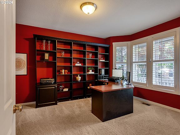 Located in the sought-after Oak Grove neighborhood at the base of Bull Mountain, this home combines functionality with ample space. The open floor plan includes a main floor office that can be repurposed as a bedroom, a family room with a gas fireplace, and a dining area that seamlessly connects to the kitchen, featuring a walk-in pantry, gas appliances, and breathtaking west valley views. Upstairs, you’ll find a spacious primary suite with double walk-in closets, three additional bedrooms, and an oversized bonus room, offering plenty of space for diverse needs. The finished basement is an entertainer’s dream, showcasing a striking custom bar with seating for four, a fridge, and dishwasher. This space also features high ceilings, custom built-ins, and a private covered deck, making it the perfect place to host the big game. Don’t miss all the additional storage space that is offered throughout the home. Step outside and enjoy the serene greenspace backdrop providing both privacy and tranquility, this property is a true standout in the Oak Grove community.