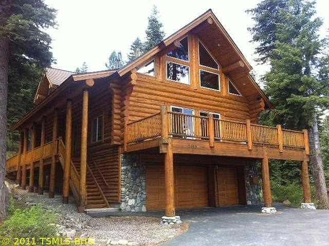 Stunning log home that backs to forest. HUGE logs make this the quintessential mountain lodge-home. The Great room is set off by the immense logs overhead, the beautiful rock fireplace and soaring windows that bring in the mountains and lots of natural light. Kitchen is a chef's delight, with double ovens, downdraft cook-top with grill, spacious granite counter-tops and custom alder cabinetry. Master suite is very private, has massive logs over-head. Gorgeous!