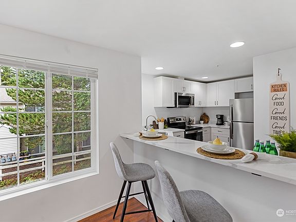 Wonderfully updated condo in the gated community of Brookfield. Virtually everything is brand new and untouched. Kitchen has gorgeous quartz countertops, new cabinets and stainless steel appliances. Both bathrooms have been completely renovated. Open living area complemented with gas fireplace and lots of natural light. Fresh paint and carpet in bedrooms. Commuters dream with only a couple turns from I5 and light rail coming soon. Plenty of restaurants and shopping options nearby. Pride of ownership is evident throughout this community. Reasonable dues help with affordable living!