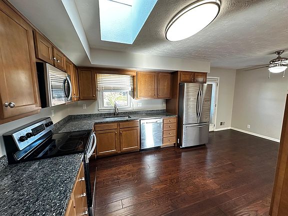 Discover your next home in this spacious 4-bedroom, 2-bathroom. Upstairs, the living room seamlessly connects to the kitchen, creating an inviting layout perfect for effortless entertaining. Downstairs, a sizable family room boasts a charming fireplace to welcome cozy fall gatherings. The family room opens to a patio area which leads out to a large, treed yard. Perfect spot for outdoor activities. To view, please message via Zillow.