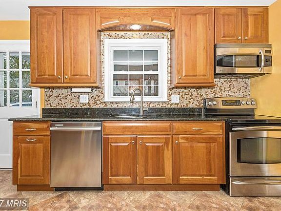 This 4-level home boasts HW floors, updated kit w/gorgeous cherry cabinets, SS appls, built-in micro, granite counters, eating area w/addtl cabinets; 4 BR, 3 Full BA, 2 BA's updated, recessed lights, updated light fixtures, family rm w/wood stove, large rec rm in bsmt. Oversized detached 2-car garage w/extra rm for storage + carport, partially fenced yard w/paver patio + walkway, shed & more!