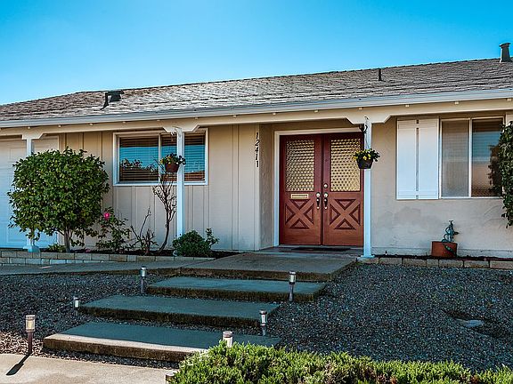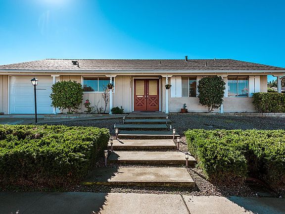 Lovely large elevated corner lot home with low maintenance front and private fully fenced backyard. Home has new energy efficient roof and newer HVAC unit. Recent improvements include interior and exterior paint, lighting and plumbing fixtures, baseboards, door casings and new garage door. The sunroom/office/optional bedroom addition is not included in square feet. Indoor laundry room. Covered patio. Community has very low HOA fees and much to offer swimming, spa, billards, shuffleboard, clubs and more. Additional improvements include two new ceiling fans in master bedroom and sunroom. New carpet. Master bedroom has double closet with mirrored doors and second bedroom's closet has three mirrored doors. Updated tile surround in hall bathroom. Deep utility sink and shelving in laundry room. Lovely french doors in sunroom. Automatic solar light on front door entry, automatic solar walkway lights and automated front post light. Producing lemon and orange trees in backyard. Six circurt sprinkler system covers entire property and is automatic. Room for car and storage space in garage. Garage is easily assessible from two interior doors.
