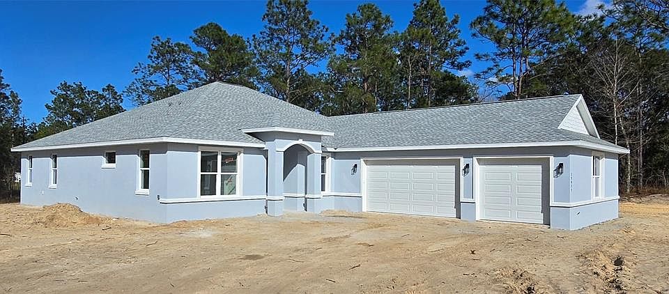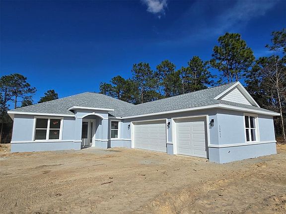 Under Construction. Welcome to The Haven, a beautifully designed 4-bed, 3-bath home offering 2,621 sq. ft. of open living space, a 3-CAR GARAGE, and the privacy of acreage living in Ocala. The open kitchen, dining and living areas are filled with natural light and designed for easy everyday living. The builder has thoughtfully designed a kitchen that showcases beautiful granite countertops, a large center island, a ventilation hood, subway-tile backsplash and a pot filler faucet designed for both style and ease. A rare and elevated MUDROOM makes a statement with a coffee-and-wine station complete with a dedicated wine refrigerator, an expansive L-shaped pantry, private laundry room with granite folding counter, and a built-in bench—designed for both convenience and style. A dedicated OFFICE/FLEX SPACE with privacy French doors adds flexibility for remote work or additional living space. The split floor plan provides privacy, with a spacious primary suite featuring dual walk-in closets and a spa-inspired bath complete with a soaking tub set in a private transom-lit alcove filled with natural light. A GUEST ENSUITE with private access to the lanai and two additional bedrooms provides room to adapt as needs change. Step outside and enjoy the freedom of over an acre of open space — room to unwind, entertain, or plan future additions. This home presents a rare opportunity for a smooth, timely close on brand-new construction. Designer-selected finishes shine with Sand-toned cabinetry throughout, a striking Moss kitchen island and bathroom vanities, and a warm brown luxury vinyl plank flooring in the living areas that gives the home a polished, high-end feel. The video is from a previous model and show different color features and buyer paid upgrades not included at the purchase price (exterior stone accents, upgraded appliances, luxury vinyl plank flooring in the bedrooms, and epoxy garage flooring). Mudroom upper cabinet shown in photos/video will not be included at this location.