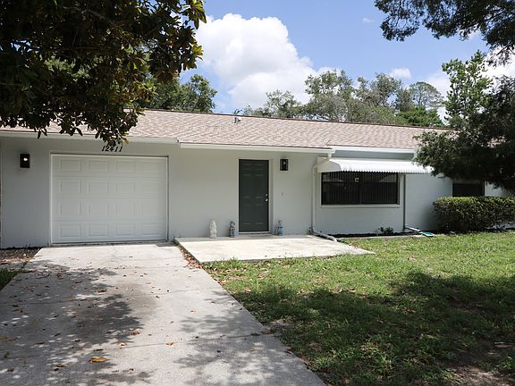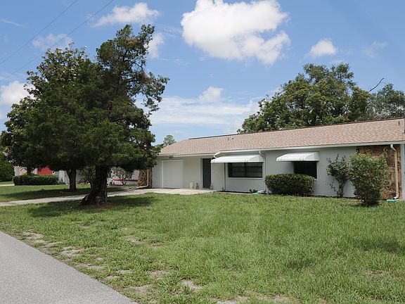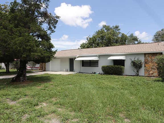 Single family residence with 2 bedrooms, 2 bath, 1 over sized car garage, located in desirable Spring Hill and convenient to shopping, dining, major highways for quick commutes to the Tampa Bay area, and more! Situated on a spacious lot, with fenced backyard, Screened porch in rear, open floor plan including living room and family room, ceiling fans, newer roof and A/C. Brand New Appliances (fridge and stove), 1 car garage door and opener, side garage door and screens in covered lanai BRAND NEW! Freshley Painted inside and out. Inside laundry room. Sprinkler system as-is. HOUSE SELLING AS IS