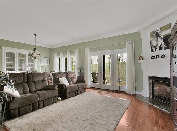 What a beautiful and well built home. Foyer has hardwood and 10' ceilings and opens to the living room with hardwood and a gas fireplace. Formal dining room with hardwood. Fabulous kitchen with a Wolf dual energy stove, in addition to the oven in the stove there is a built in wall oven and microwave and warming drawer. Granite counter tops, center island, beautiful 42" cabinets and the kitchen opens into a large great room with with walk out bay. Master bedroom has a luxurious walk in tile shower. Full basement is heated and cooled - walls are sheet rocked and there is a half bath and private access - could be an in-law suite. 2 tankless water heaters, central vacuum system. Stairs to second floor which could be finished. New dimensional roof - gutters - and copper roof approx. 8 months ago. 2 car detached garage and situated on 9.9 private acres with wonderful views. This home has been WELL maintained and has too many features to mention. This is a must see.