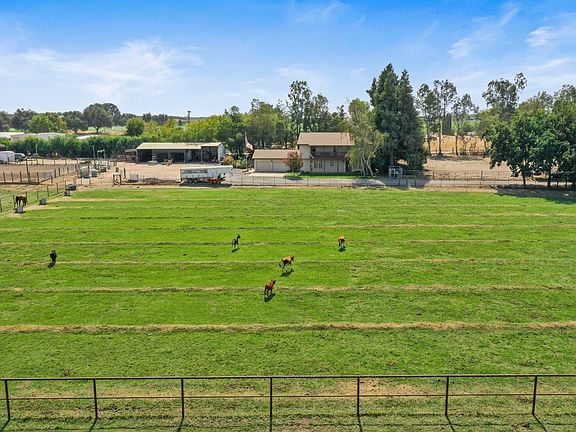 Own your own slice of Oakdale Cowboy Heaven! Sited on nearly 4 acres, this 2486 SF, 4 Bed/3 Full Bath has a recently remodeled kitchen, new luxury plank vinyl flooring, and one full bedroom & full bath downstairs. Large utility room has loads of storage. Master bedroom is roomy with outdoor access to the balcony with fabulous views. Ready for your horses & animals, there are 2 OID irrigated pastures with auto watering, 2 paddocks with shelters, tack room, workshop with 50 amp power, hay & grain storage and a 60' X 40' four stall open barn w/water & power. The lighted 100' X 150' arena has been groomed for the pickiest of riders. RV parking has hookups for power & water. Fenced backyard has a sparkling pool w/waterfall, drip irrigated raised garden beds & a large covered patio for outdoor entertaining. This could be the one you've been waiting for - must see!