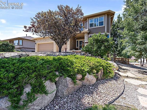 Prepare to be impressed! Absolutely stunning home has Pikes Peak, Front Range & AFA views on .59 acre! Immaculate. Newer carpet, incredible upgraded kitchen w/white cabinets and soft closed doors; quartz countertops, custom backsplash, gas cooktop, pantry & beautiful stainless appliances. Extensive hardwood floors; 2 story fam room w/built-ins. Master suite w/luxury bath. Main level office/4th bedroom w/full bath attached. Large laundry room w/ folding counter, storage! This rare find has an absolutely gorgeous finished basement w/ 2 addl bedrooms! One bedroom has an attached stunning bathroom with a beautiful tiled shower. The basement also has a wet bar for all your entertainment needs. This is the whole package with one-in-a million mesmerizing views from deck and back of home-even from the walkout basement, and on .59 acres in town. The lot extends from the street in front to the street behind the home-no one directly behind you so you have a feeling of space and privacy-yet you are close to everything you need! You will never tire of watching the mountains change colors-you can even see the Air Force Academy football field, fireworks, city lights and so much more! Watch the Thunderbirds fly over. The large deck is a great place to take it all in. Mature trees & lush landscaping in both the front yard and back yard with a 2 year old split rail fence. This gorgeous property also has a wonderful swim spa to relax in and watch the one of a kind sunsets or get some exercise in and do some swimming! The expanded private patio in the front yard is a great place to sit and watch deer pass through. This is Masterbuilt's Bridle Veil floor pan, one of the best floor ever designed-it has a perfect flow with large rooms-no tiny bedrooms here, and has maximized the views. The oversized 3 car garage is large enough for Suv's and big trucks. The large driveway even has a turn-around space! It will be a very long time before you will find another home like this-don't miss it!