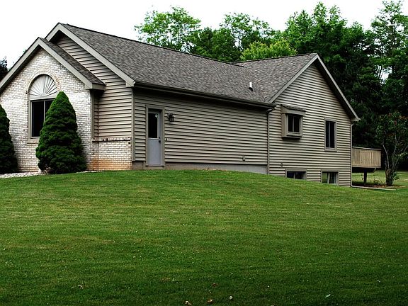 Wanting a piece of Country Heaven, look no further. This beautiful, move-in condition ranch on 2.76 acres is waiting for new owners who appreciate trees, outbuildings, no HOA and wildlife galore. The updated kitchen has Corian counters, glass backsplash and SS appliances. Dining room opens to a spacious Great Room with natural fireplace, vaulted ceilings and views of the gorgeous backyard. Large Master Suite has double closets, spa tub and separate shower. Finished basement with extra living space and plenty of light from daylight windows, plus plumbed for a 4th bathroom and a large storage room, which could serve as a workshop. Sit on your deck and watch the Elk, Deer and Turkey in the private game ranch right behind your house. Three outbuildings include a new 30x40 Pole barn with 2x6 construction, electricity, cement floor, two doors and a wood burning stove; a Gambrel Shed with a loft and smaller shed. Updates include Furnace/AC, Windows, Siding, etc. See attached list for details.