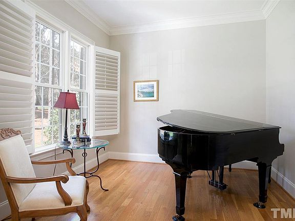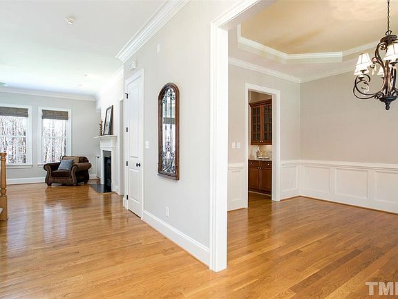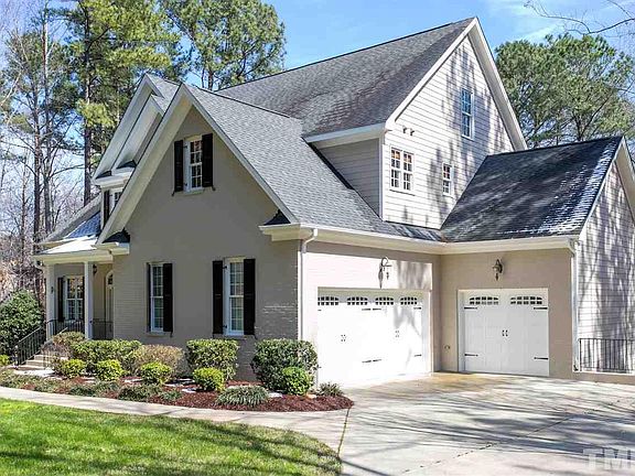 Quality custom brick front beauty in prime N Raleigh community!Elegant custom details thruout!Extensive mill work,plantation shutters,hardwoods on 1st flr, 10" ceilings on 1st&2nd flr. Chefs Kitchen w/granite,center island,S-S appl,6-burner gas Viking range.Keeping Rm/Brkfst w/2-sided FP into Fmly Rm.Scrnd porch + Deck overlook level bkyard into wooded buffer.Huge Mstr Suite w/Office.Daylight Basement has Rec Rm w/gas FP, In-Law Suite,fitness rm,w-in storage +huge walk-up attic plumbed to finish.