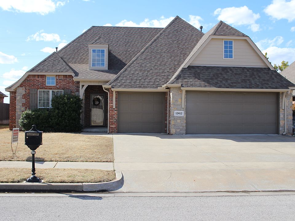 This stunning one story brick and stone home features the finest of architectural detailing and craftsmanship. 9', 10' and vaulted ceilings, arches, bull nose corners, solid custom granite, and open floor plan. Bonus room for office or 4th bed. Neighborhood park and pool. And so much more. You must see this beautiful home!! Call Kevin 918-200-2677.