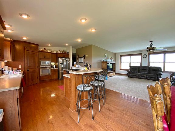 Gorgeous Ward Craft home on full finished basement and 10 acres! The lucky new owner will enjoy the open concept; large kitchen with an abundance of cupboards, counters and stainless steel appliances plus spacious pantry; newly finished basement with gas fireplace; beautiful woodwork and solid core doors throughout; flex room in basement - perfect for play room or office; very nicely landscaped yard with great stand of trees; 21x21 det'd garage, new 36x36 pole barn & 10x20 chicken coop.