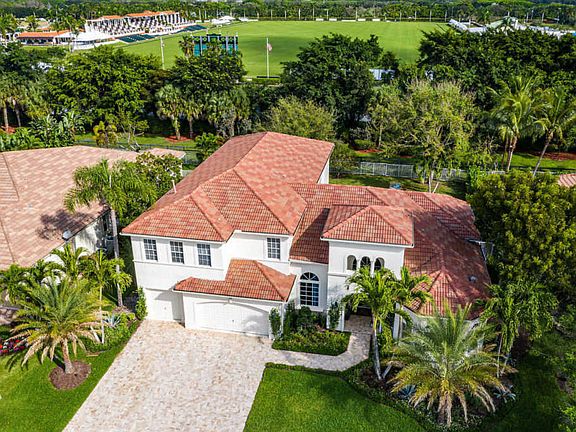 Within the coveted gated community of Equestrian Club and overlooking the world-renowned International Polo Club field, this spectacular home has one of the best locations in Wellington. Located just minutes from WEF, Global Dressage show grounds, shops and restaurants. This Beautifully updated Sacramento model home features 5 bedrooms 4.5 baths, loft area, 3 car garage and heated pool and spa. Owner has replaced all flooring in home with wood and wood tile to compliment the finishes, window treatments and wall colors. This home is light and bright and has been freshly painted. Notice the Travertine driveway and back yard. The large Master bedroom and second bedroom are located on lower level while remaining 3 bedrooms and loft are located on the upper level. Outdoor fireplace and grill
