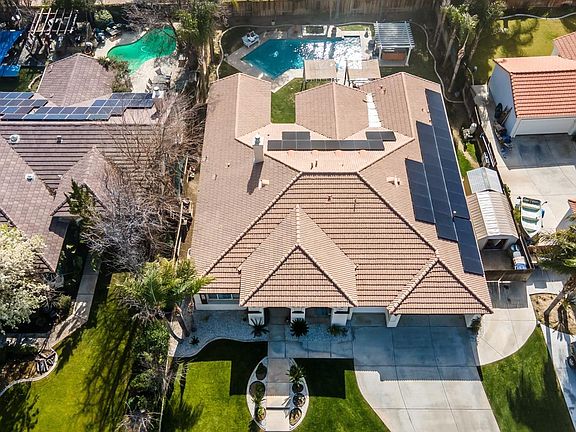 You will love this 5 bedroom property with 2.5 baths and owned solar. This property features an open concept floorplan, vaulted ceilings, formal living room, dining area and a spacious great room with a fireplace. You will love this kitchen with breakfast bar, recessed lighting, a pantry, plenty of cabinet space and a nook. This huge master bedroom offers access to the backyard, a full bathroom with double sinks, separate tub plus shower and a walk in closet. This garage offers expoy flooring, the 3rd car has been converted to a bedroom that can be turned back into a 3 car garage. The Beautiful park like backyard offers a covered patio, a pergola, nice landscaping and a sparkling pool.