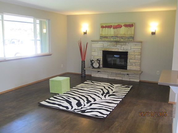 Affordable, open concpet, updated Ramber, on a private lot within walking distance to American Lake. This addorable one story home has it all. Tucked back in w, privacy hedge & New Fencing makes it safe & secure. Glorious Hardwood floors throughout. Updated kitchen w/quartz countertops, gas range & ubundant storage. Even that eat-in island you want. Mud room offers exterior access. Need two bathrooms? We have that too. Updated 1/2 bath convienitntly located just off mud room. Main bath is generously sized with updated double sink vanity Wow. Outside you have a private patio & Front golf course view. Plenty of room for garden space or playset. Even low maintainence metal roof. Cozy fireplace:) You will not be disappointed! Come see it today!