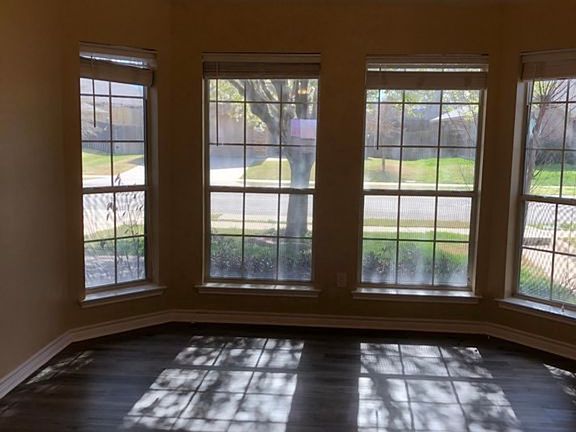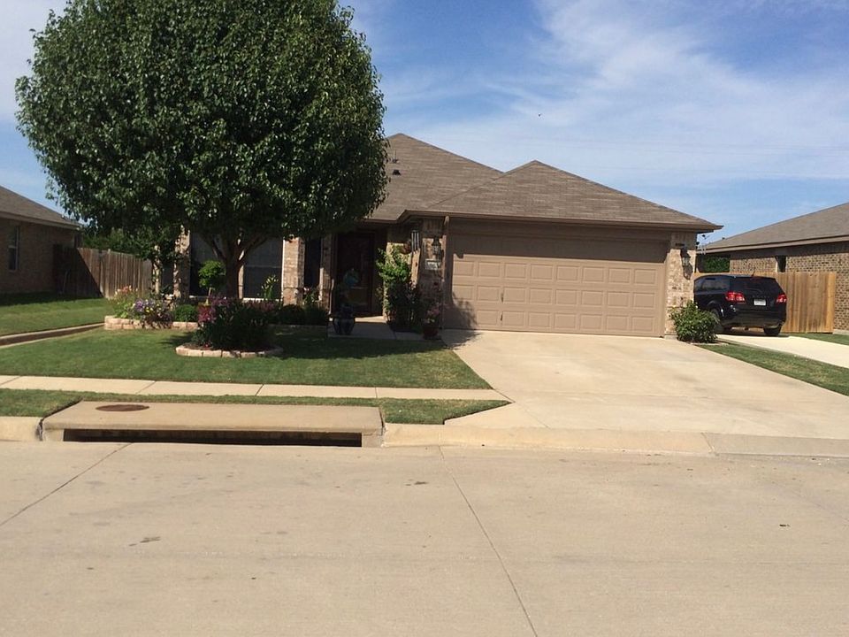 Big backyard, good view, no extra application fee (only $35 pay to Zillow for credit report) Beautiful 1 story home in Shale Creek community with 3 bed, 2 bath, 2 car garage in country setting with community pool, playground & clubhouse. Open floorplan, formal dining or great study space with bay window. Kitchen opens to living & dining with vaulted ceiling, granite counters & breakfast bar. Living room has a fireplace and great backyard views. Split bedroom floorplan with private owners suite & luxurious bath with garden tub, separate shower, linen & walk-in closet. Separate laundry room, 2 guest rooms & guest bathroom. Nice sized backyard enjoys covered patio and green space view with iron and wood fence. Easy access to Hwy 114, Northwest ISD schools, Hwy 35, Texas Motor Speedway, shops and dining. Renter pay for trash and sewer Renter respond for electric and water. No smoke inside the house