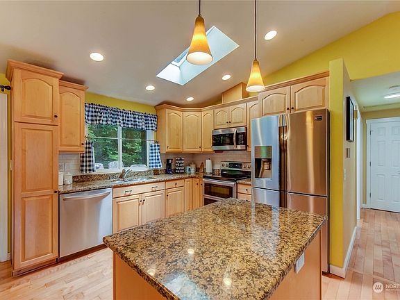 NEW PRICE! Welcome to this exceptionally refreshed home in peaceful Seattle Hill, nestled on a serene cul-de-sac with over 1/3 acre of land. Discover a spacious open Great Room flooded with natural light from large windows. The interior boasts an expansive kitchen with stainless steel appliances, Quartz counters, LED lighting, all new mill work, solid core interior doors, modern closet doors. Enjoy high-quality finishes, remodeled baths. Upstairs, find a primary bedroom with ensuite. Lower ideal for a separate unit, ADU, or MIL suite with its own entrance! Backyard features woodsy setting and an entertainment-sized deck for parties and BBQ's, a large fenced yard with a fire pit, swing set and climbing set!