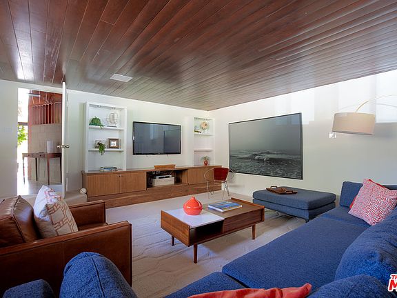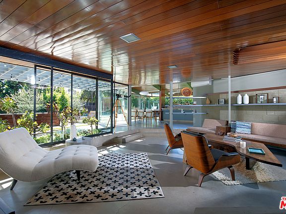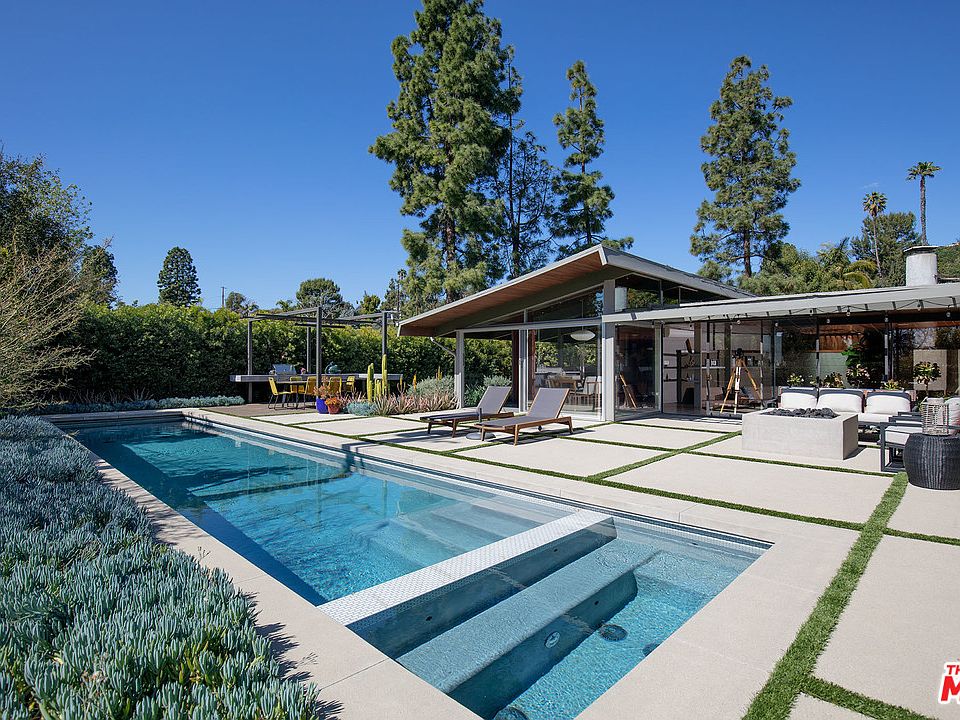 Iconic & breathtakingly beau Mid-Century Modern by master architect A. Quincy Jones in much desired Crestwood Hills. Situated on lg, flat lot on quiet cul de sac, this painstakingly restored/remod & 1 sty represents one of the few remaining examples of the architect's vision for this post war cooperative housing development. Clean lines, open flr plan, airy, sun-filled spaces, concrete flrs, masonry walls, floating shelves, clerestory windows, tongue & groove ceilings & walls of glass create a seamless integration of indr-outdr & take full advantage of the city/ocean vus. All important rms open to lush, pvt yd w/ trellis-covered patios, sparkling pl/spa & wrap-around lawn. LR w/ FP, lg din area, inviting fam rm, office & cook's kitch are ideal for entertaining & everyday fam living. Fab master suite w/ wrap-around glass, gorgeous marble & terrazzo BA & dual walk-in closets. Wful sense of community, easy access to Crestwood Hills Park & a secluded feel-yet in close proximity to town.