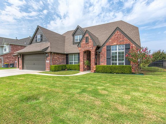 LIFE IS BETTER ON THE WATER! Enjoy serenity on the back patio overlooking the pond w/ fountain view! Fantastic OPEN floorplan! Kitchen w/ granite counters, pullouts, TWO PANTRIES + Butlers pantry! Formal dining/office! Master + 2nd bedroom on first floor, each w/ an en suite bath! Media/gameroom + 3 beds up! ALL BEDROOMS have walk in closets!Large laundry w/ built in! Large walk in storage! Garage w/ workshop space! Jenks West Elem, Neighborhood pool, clubhouse & playground. Home warranty included.