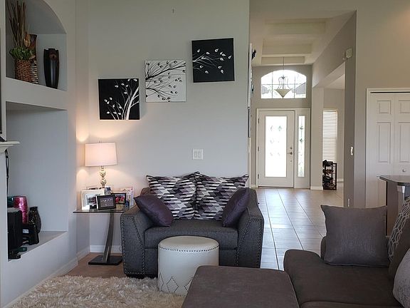 Come to see this beautiful 3b/2b, almost 2,100 sqf with 2 car garage home, a former model. Home move in ready! There are fantastic views of the pond from the huge screened in lanai. Offered high ceilings in entry and master bedroom and 11 foot high cathedral ceilings in family room/kitchen. The master suite includes master bath with dual sinks, a separate shower and a garden tub. High ceiling bring a lot of nature lights into this house. beautiful back yard and pond view crate you more vision space. A custom wrought iron gate on front entry, seamless gutters and downspouts, with sliding barn type door on 2nd bath. This property has a nice open floor plan with a wood burning fireplace in the Family Room perfect for entertaining. This is a lovely home with neighbors on only one side. The back yard is fenced with gates for ease of access and the dog park is right next door. This beautiful community have club house, swimming pool, tennis court, play ground. Dog park, side walk. Convince location:8 miles to75 high way and Ellenton Premium Outlets.10 miles to Lakewood Ranch town center.18 miles to University Town shopping mall.21 miles to Sarasota airport.22 miles to Anna Maria Beach. Please call for more detail info.