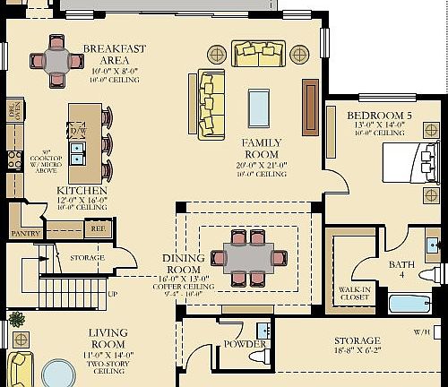 A living room situated off the foyer effortlessly flows into the formal dining room and the open floorplan shared between the family room, kitchen and breakfast area. A covered terrace makes indoor-outdoor living a breeze. The first-floor bedroom is ideal for overnight guests, while a loft and four bedrooms occupy the second floor.
