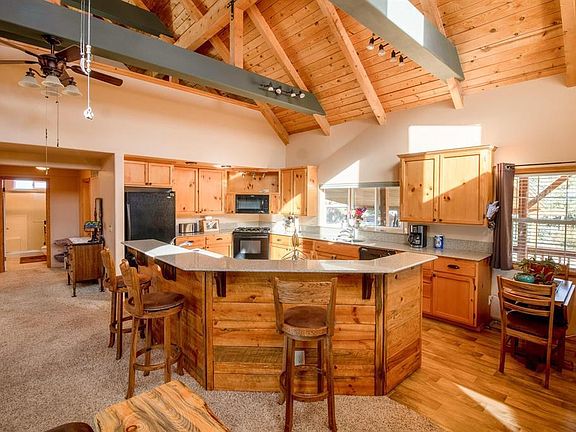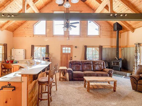 This classic Colorado log cabin, just minutes from Mancos and the plenitude of outdoor activities that surround, is perfect for year-around living, a second home, or a vacation rental! The 2bed/2 bath custom log home sits on the backside of 3.66 wooded acres which gives it incredible privacy. The interior showcases vaulted tongue and groove ceilings, exposed post and beam construction, and a wide-open floor plan. This home is perfectly set up for entertaining, showcasing a large rustic and custom wood-clad kitchen island with its own wet bar. It has durable Silestone countertops, alder cabinets, and a bay window that's sure to please. The kitchen has two ovens, and take a peek at the butler’s pantry with tons of extra storage and sink - an entertainer or cook’s gem! The main floor has 1 bedroom & a separate full bath, with the 2nd bedroom & half bath upstairs in the large loft area, which provides a bonus nook to use as an office, game or sitting area. In the winter keep warm with forced air heat, but also enjoy the ambiance and cozy up to the wood stove in the living room. The fully covered wrap-around deck provides lovely outdoor space and a beautifully landscaped area with a pergola is just steps away. Protect and store your toys and vehicles in the immaculate and fully finished 3-car, 1064 sq ft garage with wood stove, built in 2017, that has a built-in workbench, a 220V plug, plenty of extra outlets and a storage loft to boot! Bonus covered parking on the north side of the home is complete with one full RV hookup, including 220v plug, hot water and sewer. The property features a fully graveled circular driveway for easy access, and offers two large wood storage sheds and two cleared, graveled RV spaces should you want to offer extra camping space - the flexibility of this property can't be beat! Check out all of this just 15 minutes from Jackson Lake for canoeing, kayaking and rainbow trout fishing, 10 mins to Chicken Creek cross country skiing and hiking, 90 mins to Telluride’s world-class downhill skiing and 20 minutes to Phil’s world class mountain biking trail system. You don't want to miss this one!