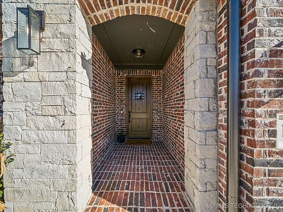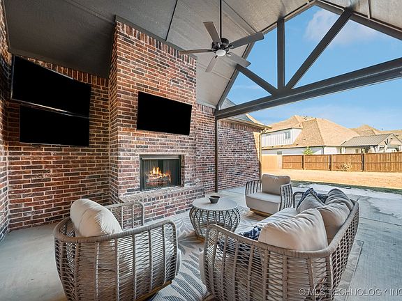 Nestled in South Tulsa and the Bixby school district on an oversized lot is this spacious 4 Bedroom single level home designed with an inviting palette that leans heavily on welcoming whites and light wood elements. This lightly lived in Executive Home has a floor plan with something for everyone. The split bedroom arrangement allows for privacy and an office with french doors and hardwood floors makes working from home feel luxurious. A separate family room/media space comes equipped with multiple televisions for games or sports or more. The center isle kitchen with stainless appliances that include refrigerator flows seamlessly to the family room with fireplace and built-ins. A large pantry, separate closet and beverage fridge make the mudroom a hub for family organization. A large dining space accesses an impressive covered patio with fireplace, television, gas connection for grill and automated screens that make this a true outdoor living space. A newly added patio also allows for a sunny open space. The primary bedroom is a luxurious retreat with a beautifully designed en suite bath. A tiled shower, separate tub and dual vanities all have carefully chosen tile that completes the neutral yet stylish color palette. A huge walk-in closet leads to a laundry room spacious enough for gift wrapping, storage and more. The 3 car garage has a gleaming epoxy floor. Chisholm Ranch subdivision offers pool, park and more perfect for pets or play or relaxing.