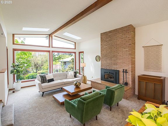 Lush gardens on .35 acres welcome you to this sprawling mid century home situated on a corner lot in southwest Portland. Step through the double doors into your sunken living room with west facing view of the valley and coast range. Mid Century details like the brick fireplaces, vintage tile and built in planters will make you fall in love with this swanky ranch. Daylight basement leaves plenty of room for play. Neil Kelley energy upgrades throughout will keep you cool through summer.