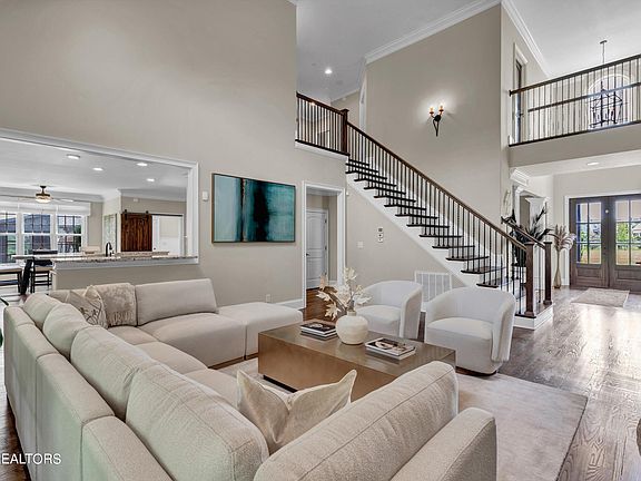 Beautiful 2 story craftsman in highly desirable Bridgemore! You will instantly notice the excellent curb appeal with stone & brick exterior, side entry 3 car garage w/ brand new epoxy flooring, covered front porch, and double front door. Upon entering, you are greeted by an elegant 2 story foyer, hardwood floors, and high end fixtures. This home boasts a floorplan ideal for entertaining. It's main level features a living room with vaulted ceiling, skylights, fireplace, and built ins; a gourmet kitchen with granite counters, brand new Jenn Air appliances, and ample cabinet space; that expands to a vaulted keeping room with wood beam accents and fireplace. Formal dining room boasts coffered ceilings; a front room that can be used as a home office or extra bedroom with walk in closet and attached full bath. Main level primary suite that offers patio access and en suite bath with granite dual vanities, walk in shower, and soaking tub. Upstairs offers 3 additional bedrooms (all with en suite baths), a large temperature controlled storage room, and a spacious bonus room with multiple closets (could even be a 6th bedroom!). Outdoor amenities include a quiet screened porch overlooking the flat yard. Bridgemore offers an array of benefits including sidewalks throughout, clubhouse, Olympic sized swimming pool, kid's pool, and numerous subdivision events! Conveniently situated in the heart of Farragut, the location is mere minutes from dining, shopping, and parks with easy access to Kingston Pike, I40, and Northshore Dr!