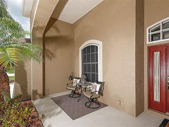 Shows like a model AND sellers are replacing the roof prior to closing! Positioned on a vibrant lawn behind the gates of the popular Chelsea Oaks neighborhood, welcome home to this elegant, well-maintained residence. Presenting a grand first impression of peace and class, the freshly painted exteriors offer a pleasing curb appeal with a covered front porch to sit with a cold beverage and greet your neighbors at the end of the day. Stepping through the front door, high ceilings, tile floors and cornerless disappearing sliders to the lanai immediately bestow an airy experience throughout the living space. Effortless entertaining is achieved in the expansive dining room and kitchen featuring a generous breakfast bar that can seat plenty of bar stools, rich wood cabinetry, granite countertops, stainless appliances, and pantry. Glass double doors lead to the den that has been fashioned as an additional bedroom with a closet. The master suite offers a romantic en-suite bath with a garden tub and access to the lanai. Maximize the versatility this home provides, and the large yard can easily accommodate a private pool with the guest bath offering convenient access from the lanai as a future pool bath. You are only minutes from the heated community pool up the street until your pool is ready. Life truly doesn't get any better than this.