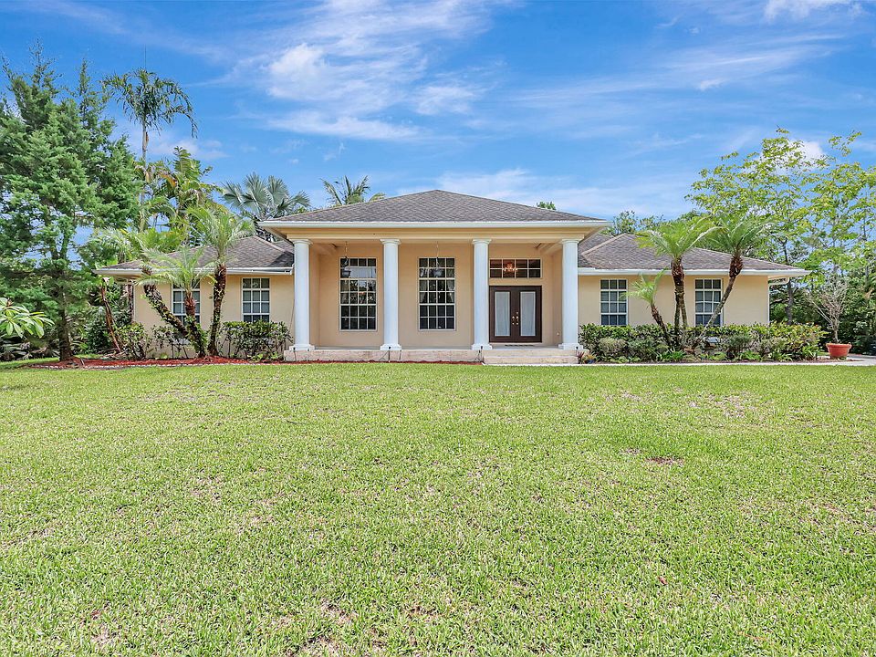 Motivated seller, all interest/offers welcomed. Discover an exceptional opportunity with this stunning 4-bedroom, 2.5-bathroom single-family home situated on a sprawling 1.15-acre lot with a rare paved road and expansive horseshoe driveway. This residence provides serene privacy, surrounded by meticulously landscaped grounds and mature trees. Upon entering, you'll be greeted by soaring ceilings, abundant natural light, and an open floor plan that offers incredible flexibility. The east wing features the primary suite, complete with dual closets, dual vanities, a luxurious soaking tub, a shower, and private courtyard views.The guest bedrooms are thoughtfully positioned on the opposite side of the home, with easy access to a cabana bath. The kitchen is a chef's dream, CONTINUED boasting granite countertops, stainless steel appliances, designer cabinetry, and high hat lighting. The bar area, perfect for casual dining and entertaining, overlooks the living area.