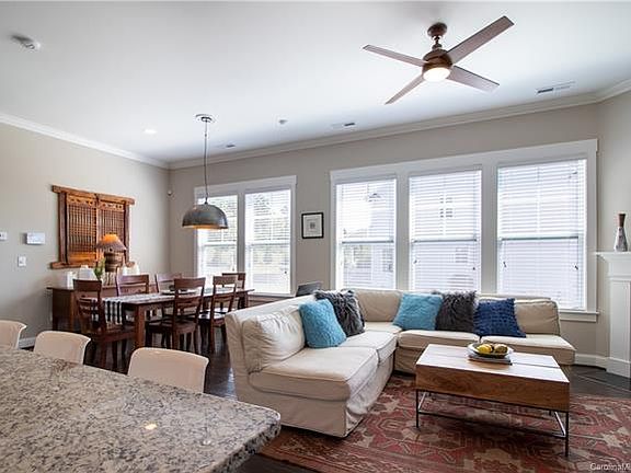 This light, bright, 1 level, 2-year-old home features an open floor plan w lots of windows, great flow & the upgraded finishings will not disappoint! Add to that, energy efficiency & full locally monitored security system, 2 car garage and we have a must-see home in a great neighborhood in the sought after town of Davidson. The neighborhood has a pool, a park & is connected to downtown Davidson & Cornelius via the Greenway. Take a short bike (or car) ride to the Farmers Market, restaurants, shops, movie theater & stroll the campus of Davidson College. The master suite features a large tile walk-in shower, double granite countertop areas; 1 w/with roll or sit under area & huge walk-in closet. The heart of the home, the kitchen features a gas stove, SS appliances, tile backsplash, LG pantry, coffee bar, & beautiful granite countertops at island/bar. The comfy family room also has wood floors, a gas fireplace, beautiful trim.