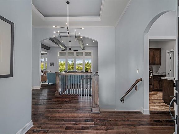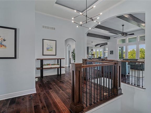 Welcome home to this exquisite James Engle Sanibel model, meticulously expanded to offer unparalleled elegance and comfort. Boasting an array of upgrades, this residence surpasses new construction with its thoughtful enhancements. The expansive Rev. 1 1/2 story design features soaring ceilings on both levels, enhanced by additional windows that flood the space with natural light. The interior showcases soft-close drawers on all cabinets, a grand slate fireplace wall, and upgraded flooring throughout, complemented by elegant plantation shutters. The deep, oversized 3-car garage, complete with a 4th car lift and a California closet system, offers both functionality and style. Additional luxuries include a thermostat-controlled wine room, a newly added office on the lower level, and newer garage doors, AC, and water softener. Set on a private cul-de-sac lot, this home backs to serene woods and is surrounded by lush landscaping. A large outdoor fireplace with seating creates a perfect retreat for relaxation and gatherings. This residence is truly a unique gem!