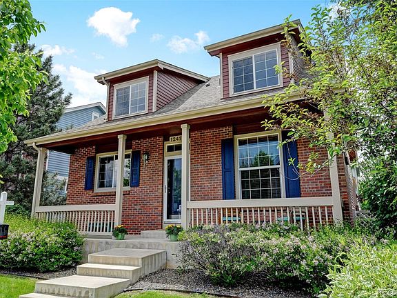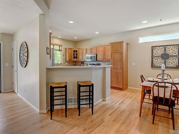 The pride of ownership shows in this excellent Crofton Park cottage home! Located in a desirable neighborhood of Broomfield, this home offers convenient access to Paul Derda Recreation Center, trails, parks, and all amenities for daily life. Beautiful hardwood floors flow throughout the open floor plan. Enjoy doing dishes while looking out to your front covered patio in the excellent kitchen with endless counter space, top of the line appliances, and a bar for informal dining & entertaining. Great dining space opens to the family room with fireplace. Access the low-maintenance backyard from the family room and enjoy the flagstone patio under the leafy canopy provided by the mature tree. Back inside you'll discover laundry in the owner's access from the 2-car, alley access garage. Tucked away at the front of the home is the primary bedroom with a large 5-piece bathroom and walk-in closet. Upstairs are the 2 additional bedrooms that are over-sized offering unique hip roof lines adding tons of character, attic access, and both sharing a jack and jill bathroom. This home faces east, so you have excellent natural light all day long. The full size unfinished basement includes rough-in plumbing, a new radon mitigation system, and endless possibilities to finish it for your personal needs. Don't worry about mowing your front yard or shoveling snow, the HOA will take care of it. This immaculately well-cared for home is absolutely worth a visit!