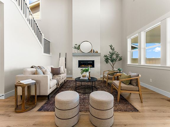 Welcome to Sun Creek by Williams Homes, SW Boise's newest single-family community! The Plan 2 features the perfect blend of entertainment spaces, secluded retreats, and privacy with only one adjacent neighbor. A welcoming covered entry opens to a charming foyer that flows past a first-floor bedroom and full bathroom and leads into the great room with a fireplace, vaulted ceiling, and access to a covered outdoor patio. Highlighted by a large center island with breakfast bar, the expertly designed kitchen offers ample counter and cabinet space as well as a butler’s pantry. The main floor primary suite includes a luxurious bath and walk-in closet. Upstairs, find a loft and two additional bedrooms. Enjoy a 2-car garage, mud room, and front and rear landscaped yards. Sun Creek is conveniently located near the YMCA, Albertson's, Discovery Park, and I-84. Showings by appointment. Photos are similar.