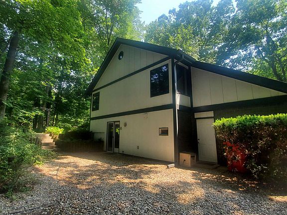 If you're looking for UNIQUE, this is it!! Come fall in love as soon as you enter taking in the soaring vaulted ceilings and open concept. Some of the many features include both a family & living room, 2 wood burning fireplaces, hardwood & slate flooring, 3 bedrooms, 2.5 baths, cozy library in the upper catwalk with gable windows, walkout lower level, plenty of storage, huge distinctive deck surrounded by exquisite landscaping complete with firepit & Weber grill. Pride in ownership is apparent, so get in now! *Bonus: There is a 20amp receptacle and 45x14 gravel pad for a motor home.