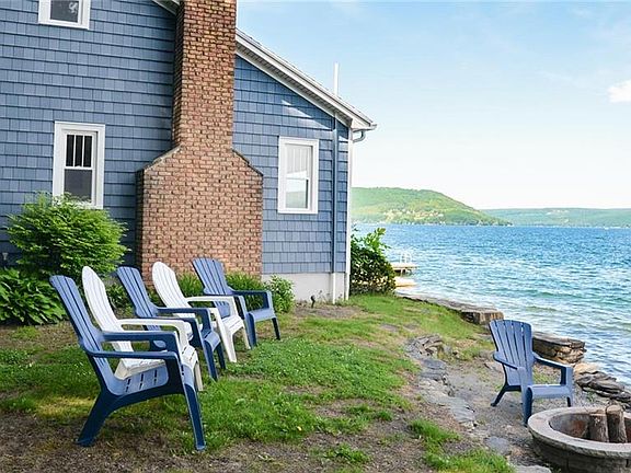 Now is your opportunity to own a piece of Keuka Lake! This gorgeous 3/4 bedroom 2 full bath home sits right at the water's edge embodying all that lakefront living has to offer! 142 feet of pristine lakefront, this nearly 3000 SF, multi-level home offers space galore! With views from every room, come in and enjoy the separate living and family rooms with plenty of windows to take it all in! Living/dining room combo makes for fantastic family gatherings. Updated country kitchen with new appliances, plenty of counter top and cabinet space! Partially finished basement offers additional living or sleeping space with walk out to the lakefront. The second level has Master bedroom w/bath, and 2 potentially 3, additional bedrooms and full bath. Out at the water's edge, you will find a gradual entry beachfront with fire pit and Dock. 4 Acres across the road is a great place to build another home or garage with additional living space or income apartment. The possibilities are endless. Great location! Close to the well loved village of Hammondsport with it's quaint shops and fantastic restaurants! Less than an hour to Penn Yan, Canandaigua and Watkins Glen, this home offers so much!