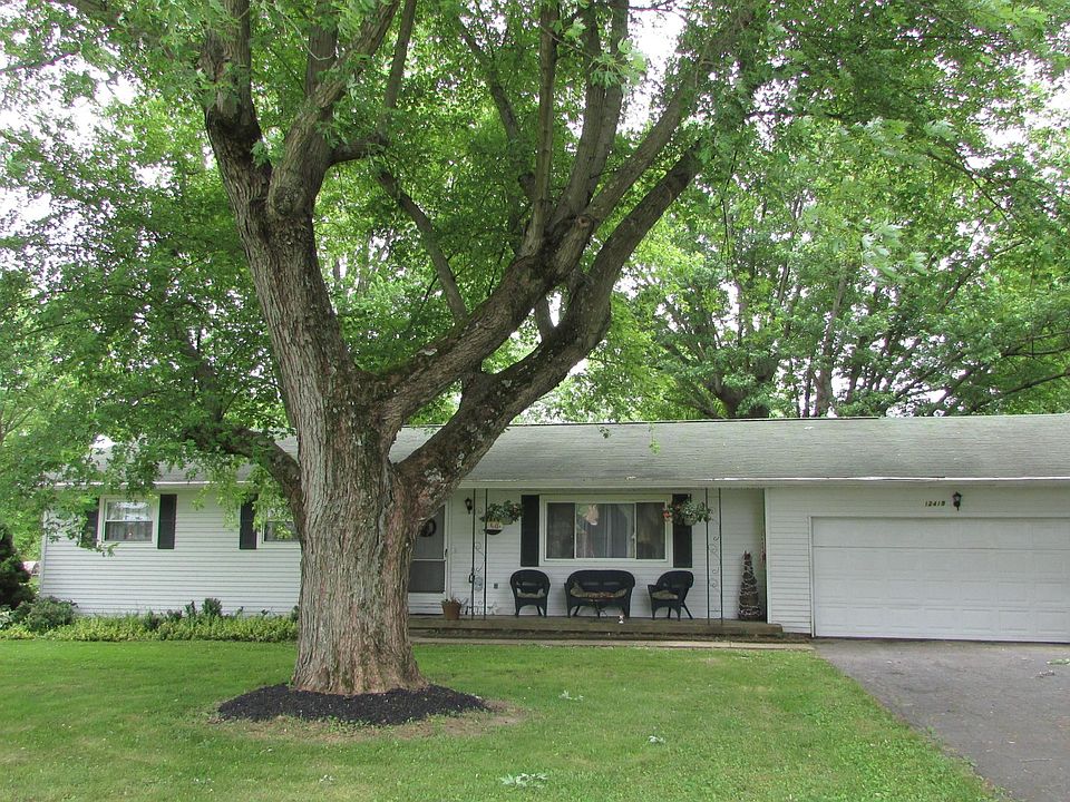 ENJOY THE COUNTRY SITTING WITH MATURE TREES ON OVER 1/2 ACRE LOT. PLENTY OF PARKING FOR GUEST. ENJOY THE FRONT PORCH. NEWER KITCHEN CABINETS PLUS BAR EATING SITTING AREA. THIS HOME HAS A LARGE FAMILY ROOM WHICH WAS ADDED ON WHICH INCLUDES A WOOD BURNING FIREPLACE. LIVING ROOM WHICH IS OPEN TO THE FORMAL DINING AREA.OWNERS BEDROOM & BATH. XLARGE 2 CAR GARAGE., DECK, AND SHED.PLENTY OF ROOM FOR GARDENING. NEWER WINDOWS 8 YRS. OLD. 1ST FLOOR LAUNDRY.CLOSE TO I-71 ABOUT 10 MINUTES NORTH AND SOUTH.