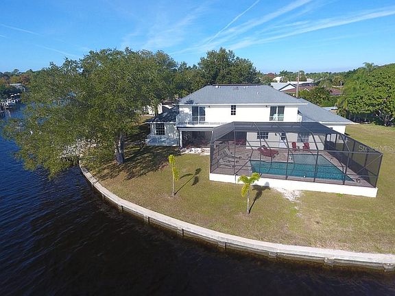 This peaceful, picturesque home sits directly on the Myakka River, which is a tidal river flowing to the Charlotte Harbor & Gulf of Mexico. One-mile span of river is your back yard! Drink your coffee in the morning watching dolphin swim by and sip an ice cold beverage as you bring in a nice big snook or redfish from your seawall. The location cannot be beat, situated on almost half an acre of land, with 244 ft of concrete seawall along the river. Nearly every room in the home has a view of the sparkling water! Whether you are upstairs in the two large bedrooms (each with walk-in closets and their own open 27 ft long patio!) or on the spacious main level with the remaining 2 bedrooms & living areas, you will feel as if you are living on an island. Main living room has an entire wall that pockets back, beckoning you to the lovely pavered, screened pool area. To the right is the dining room, kitchen (with sliders to the lanai!) AND an amazing gathering room that continues your 180 water view. You can venture out the side patio, down the paver pathway to the 30 x 10 ft concrete dock with concrete pilings and 10,000 lb covered boat lift. Even the garage has an additional covered carport AND separate workshop area. Did I mention the whole-home generator? So much has been done to this home in the past 3 years. These "point" homes do not go on the market often and truly are like no other location. The view will take your breath away every single day. You don't want to miss this opportunity. Call to see it today!