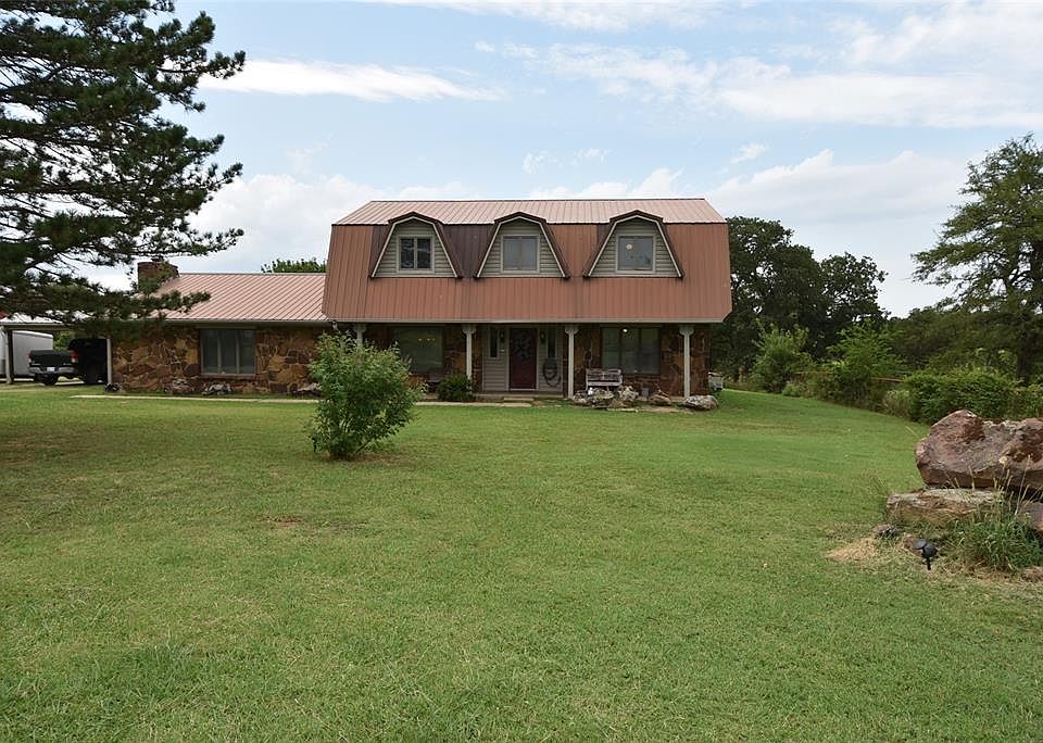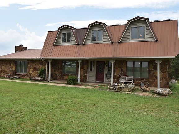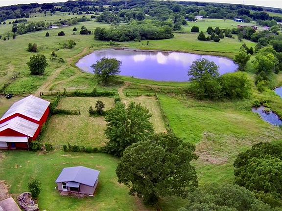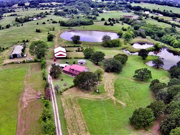 Live, work and play without ever leaving your homeplace! Enter the electric gate on a dead end road and venture up the driveway to this spacious 4 bedroom, 3 bathroom home. Step into the large open living room with beautiful stone fireplace, unique wooden mantle, gorgeous knotty Aspen ceiling, and Anderson windows, which combined creates a warm, inviting space for friends and family to gather. Kitchen has custom wood cabinets, center island with glass stove top, stainless appliances, and both formal/informal dining areas. Primary first floor bedroom is spacious with a beautifully remodeled en-suite located near the laundry room. Entrance from the double carport into a sunroom also has sliding glass doors and lots of windows to enjoy the backyard views of wildlife and ponds. Three additional large bedrooms and 2 bathrooms are upstairs. Each bedroom has great views of the 80 acre m/l pastures. Property has several outbuildings: 106x78 quonset barn with office space, 36x78 barn with 8 horse stalls, tack room and overhead hay loft/storage, and 22x16 office/cabin which has living area, kitchenette and bathroom. The 80 acres m/l is fenced, cross fenced and boasts 4 nice stocked ponds. There is so much to see. Call today for a private showing!
