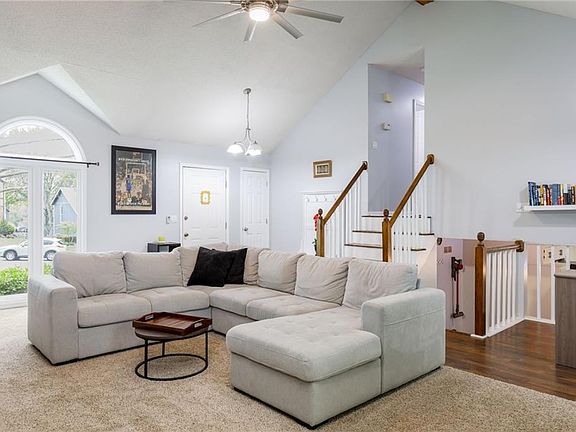 You will then find the spacious living room with vaulted ceilings, newly updated flooring, and a modern fireplace, that is perfect for entertaining guests and relaxing with family. Check out the nice sized bedrooms and a bonus living space in the basement. Updates throughout the home, including hardwood flooring, new granite countertops, newer roof, and newer water heater. All the big ticket items have been done for you! Move right in!