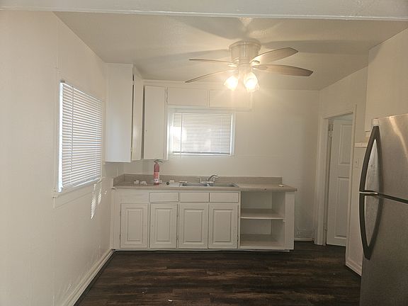 Cute house in quiet neighborhood near downtown Sanger. Large kitchen with stove and refrigerator. Indoor laundry hook ups. Private yard too. Tenant pays for water, gabage, and sewer