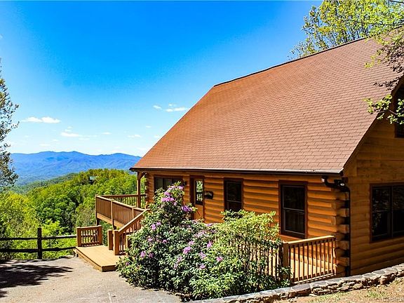 Spectacular mountain view, comfy cabin feel, cathedral ceiling.. this log cabin is just the right place to make special memories to last a lifetime. This beautiful cabin has 3 bd/2ba, wooden spiral staircase, top of the mountain privacy and multiple outdoor spaces for entertaining all with year round paved access. Sit on one of the 3 decks and enjoy your morning coffee or enjoy the cool mountain breezes and look at the twinkling stars from the hot tub while listening to nature and taking in the breathtaking long range views. Just minutes from downtown Bryson City, NOC, Great Smoky Mountain National Park, Blue Ridge Parkway and more. Cabin has been on a vacation rental program in the past but has been removed to sell. Cabin is on a well, however it also has its own rain water collection system. Add'l adjoining 1.06 Acre lot can be purchased along with this home as a package deal.