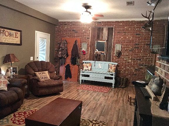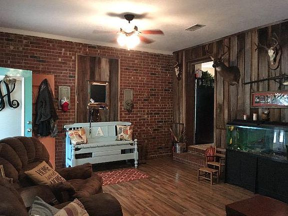 This country brick home is nestled in the canopy of beautiful large oak trees. Located on the corner of Mathis Road and the Broxton Highway this home has 2 acres and outside storage buildings. The home has a warm cozy charm with the accented reclaimed barn wood in the den. The home has many upgrades including plank style laminated wood flooring, ceramic tile, kitchen island, new appliances, carport, vinyl eaves and soffits. The kitchen offers an eat in kitchen island and open to the family room. The 3 bedroom, 2 bath home offers 1715 sq ft of living space. A sunroom is an added feature of this home allowing extended space and several options. A workshop/man cave is located outback for cooking out or just sitting by the fire pit relaxing.