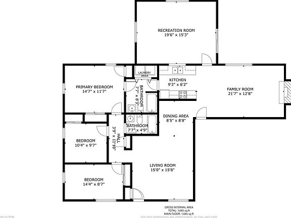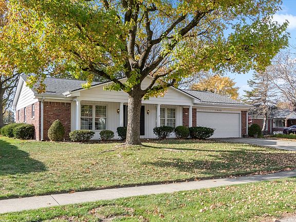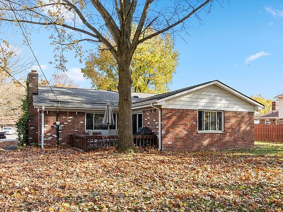 Timeless 60's era brick ranch home on a quiet street in the desirable, established Tempo Neighborhood w/a large picturesque yard, mature trees, no HOA & sidewalks for walks & bike rides. Close to restaurants, shopping, parks, tennis, & easy access to I-465 & I-70, this home resides in a beautiful neighborhood of established & well-maintained homes. The diverse floor plan offers many living & entertaining options & is one of the largest of this floorplan due to the huge bonus room just off the kitchen. The inviting covered porch welcomes you to enter the front door which leads you to the Formal L-shaped Living Room w/Dining area & continues to flow to the Family room w/cozy gas fireplace. The galley kitchen adjacent to the family room also opens to the huge bonus room at the rear of the home, offering endless options such as rec room, game room, addl. living/entertaining space, etc. and overlooks the large, private, beautiful yard. On the other side of this big, circular floorplan, are the 3 bedrooms & 2 full baths with large closet spaces in the rooms & halls. The spacious primary bedroom w/full piece en suite is wheel chair accessible & includes the washer & dryer & addl. storage. This charming, one level, open home is the perfect home to start your homeownership journey or to relax & enjoy this low-maintenance forever home!