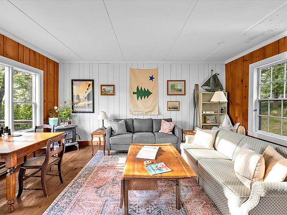 At the top of Town Landing Road in Brooksville, this saltwater-view, three-season cottage is a classic Blue Hill peninsula retreat. Built in the 1950s it's been deemed ''Bryn-Teg'' for decades. Meaning ''Beautiful Hill'' in Gaelic/Irish, the two-bedroom, two full-bath cottage with original wooden floors, paneling and a clawfoot tub is as one-of-a-kind as its name. Picture window and rear deck views toward Castine, and the cottage is within a mile of Tinder Hearth's wood-fire bakery and pizza ovens (NY Times top-50 restaurants ''most excited about right now'') in one direction, and the shoreline trails of Holbrook Island Sanctuary are just down the road in the other. On a large corner lot (1.04 acres) that blooms with wildflowers, lilies and lilacs, the scenic Coastal Road location offers endless possibilities. One of Maine's prettiest coves for boating and swimming is just a short walk down the hill. Enjoy morning coffee or a sunset glass of wine on the waterside deck, and see constellations above the treetops—on the Fourth of July, watch for Castine's fireworks show. With all-new plumbing, refrigerator, dishwasher and clothes washer, this charmer is being sold with complete, ready-to-use furnishings and contents—including an O'Day Daysailer boat with full rigging and sails. Favorite stops within minutes nearby (several reachable by land or water) include Buck's Harbor Market, LDI Lobster Dock & Dine, the WoodenBoat School, Northern Bay Market, Walker Pond Landing (for a freshwater dip), Aragosta at Goose Cove (the chef's a James Beard award nominee), the Stonington Opera House, Blue Hill Co-Op and the wonderful Blue Hill Wine Shop. More natural beauty and hikes at Acadia National Park are within an hour's drive. Don't miss this special turn-key property. Nothing else like it on the market! Offer deadline of Monday, July 29th @ 5pm.