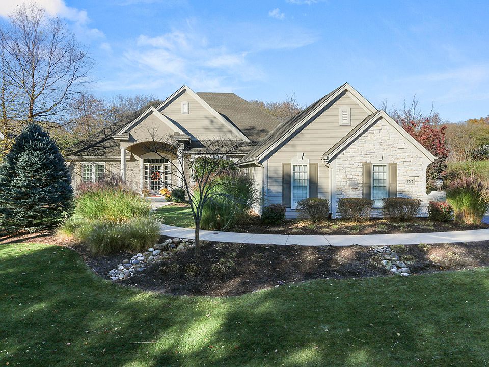 Warm, contemporary 3bdrm/2.5ba Geneva National ranch has a flowing and open design concept. Built in '06 by Kingsway, the home has recently undergone updating: lighting, carpeting, interior painting. Entertain at any scale from the expansive kitchen counter, casual dining area adjacent to kitchen, and the open dining room. From intimate dinners to summertime soirees this floor plan accommodates! A spacious white kitchen with ample counter space and convenient pantry is the home's central gathering space - open to the great room with gas fireplace, the dining area and family room with patio doors that open to a large, private patio. An airy main level master suite boasts 2 walk in closets and a perfect spa-like bath area. The split bedroom design ensures privacy. Meticulously maintained.