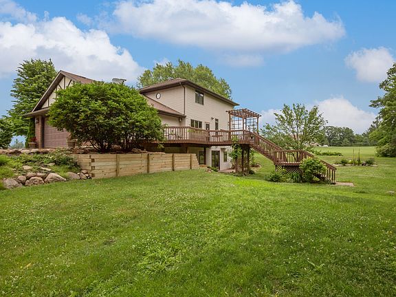 This stately, 2700 sf, 4 bedroom, 4 bathroom, 2 story, walk-out sits on a 2.56 acre wooded lot with easy access to Hwy 30 and only 20 min. from Ames. A dramatic, 2 story great room with rock fireplace, elegant kitchen perfect for entertaining, huge mudroom, office with french doors, large deck overlooking a beautifully landscaped yard, and lower level family room that walks out to a brick patio are just a few of the features of this home. You will love walking the trails and exploring the woods.