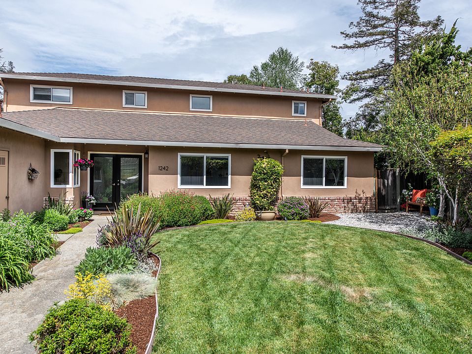 Eureka! California living is here for you in this beautiful bright California Ranch Home! Enjoy the tranquility of this spacious hidden gem. 1242 Kern Court is tucked into a private Waverly Park cul-de-sac on a large, beautifully landscaped 10,243 +/- sf lot. Designed for entertaining, comfort and elegance, Kern has 2 Master en Suites (1 downstairs) and 3 additional roomy bedrooms, 3 full baths, living, dining, family room, and inside laundry room with pantry. Sparkling pool, multiple outdoor dining areas and gorgeous established gardens. Attached 2 car Garage with ample storage. Close to award winning Los Altos and Mountain View Schools. This lovely home offers contemporary space and design balanced with beauty and warmth! Near to: Google, Apple, Stanford, Downtown Mountain View.