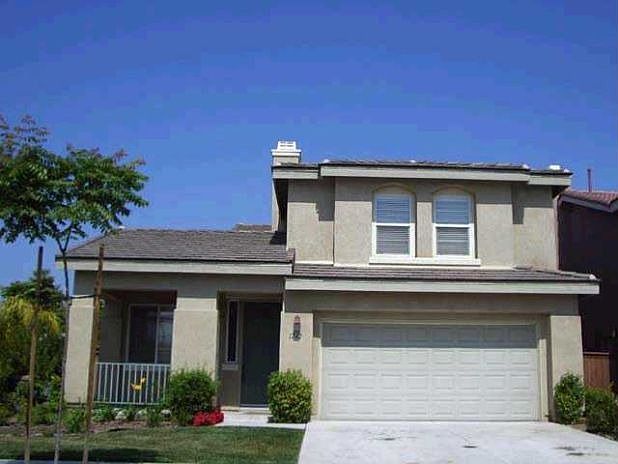 This home has vaulted ceilings, upgraded carpet and tile flooring, built-in media niche in family room, ceiling fans in family room and all bedrooms, mirrored closet doors, professionally landscaped with stamped concrete, and cabinets in garage.